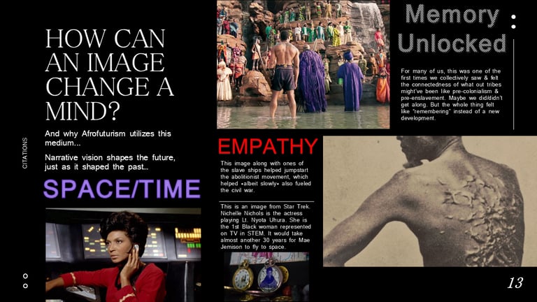 This is a collection of the images I've taken from exhibitions and my own related work, examining principles across geography, place identity, and Afrofuturism.